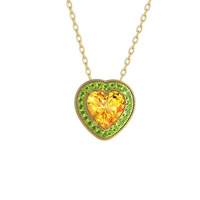 Sitrin ve peridot 925 ayar altın kaplama gümüş kolye (40 cm altın rolo zincir)