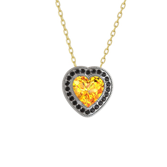 Sitrin ve siyah zirkon 925 ayar gümüş kolye (40 cm altın rolo zincir)
