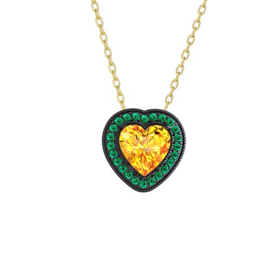 Sitrin ve yeşil kuvars 925 ayar siyah rodyum kaplama gümüş kolye (40 cm altın rolo zincir)