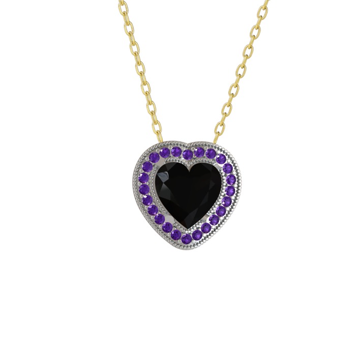 Siyah zirkon ve ametist 8 ayar beyaz altın kolye (40 cm altın rolo zincir)
