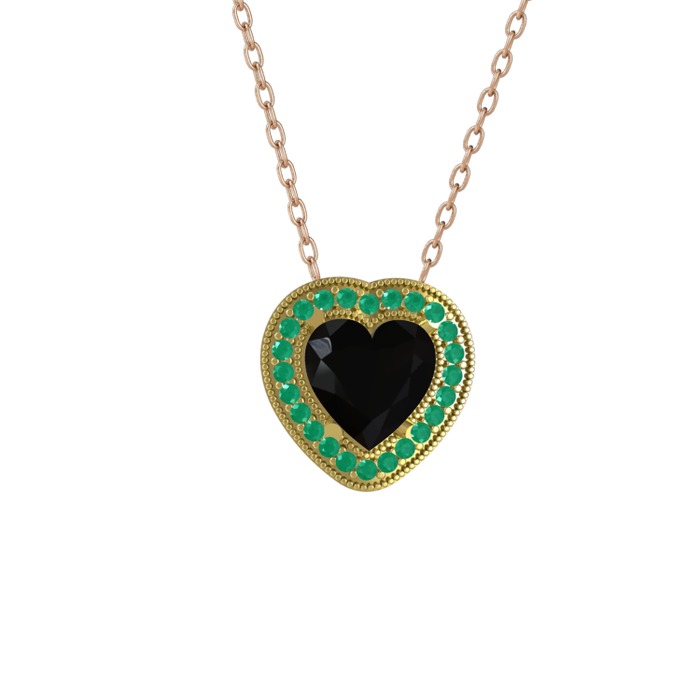 Siyah zirkon ve kök zümrüt 14 ayar altın kolye (40 cm gümüş rolo zincir)
