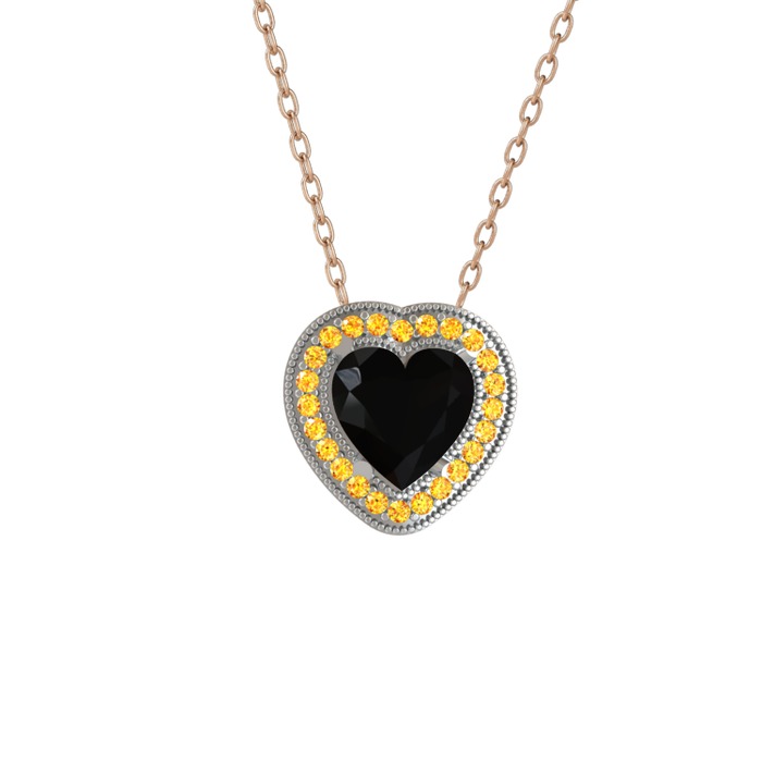 Siyah zirkon ve sitrin 8 ayar beyaz altın kolye (40 cm rose altın rolo zincir)