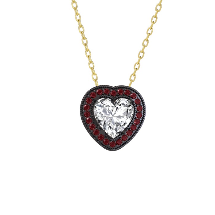 Swarovski ve kök yakut 925 ayar siyah rodyum kaplama gümüş kolye (40 cm gümüş rolo zincir)