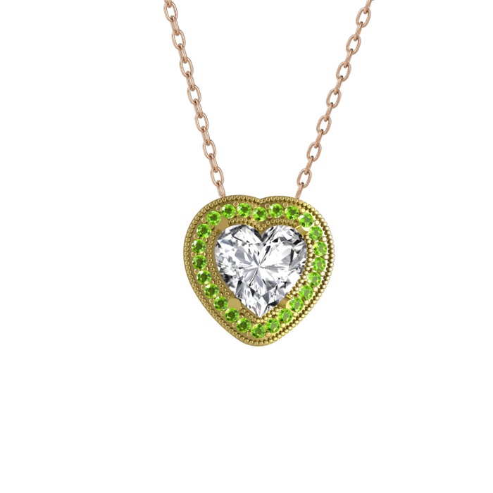 Swarovski ve peridot 8 ayar altın kolye (40 cm rose altın rolo zincir)