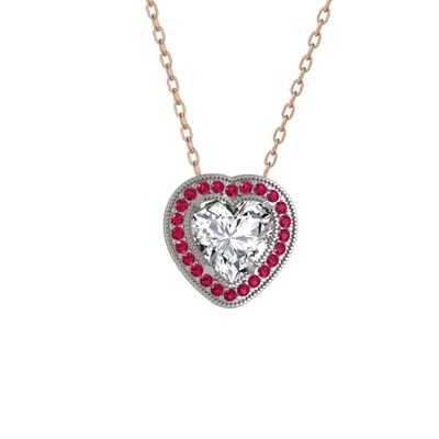 Swarovski ve rodolit garnet 18 ayar beyaz altın kolye (40 cm rose altın rolo zincir)