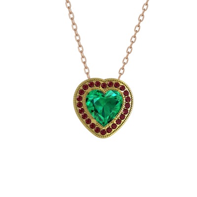 Yeşil kuvars ve kök yakut 18 ayar altın kolye (40 cm gümüş rolo zincir)