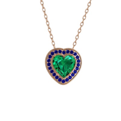 Yeşil kuvars ve lab safir 18 ayar rose altın kolye (40 cm rose altın rolo zincir)