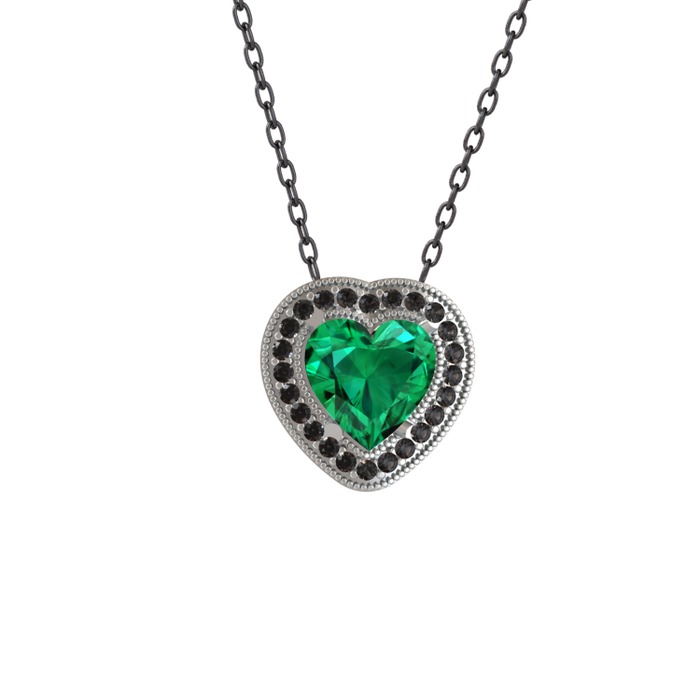 Yeşil kuvars ve siyah zirkon 8 ayar beyaz altın kolye (40 cm gümüş rolo zincir)