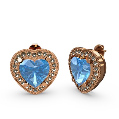 Akuamarin ve dumanlı kuvars 8 ayar rose altın küpe