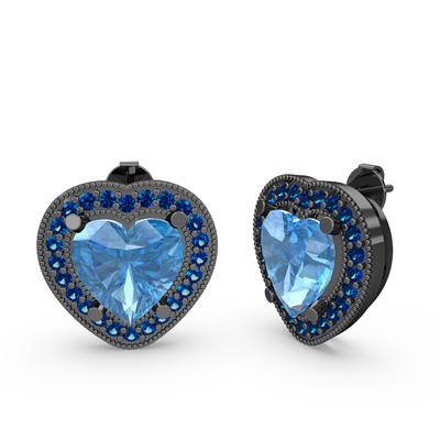 Akuamarin ve lab safir 925 ayar siyah rodyum kaplama gümüş küpe