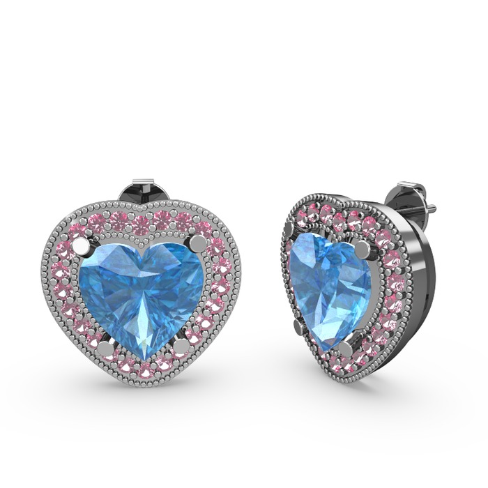 Akuamarin ve pembe kuvars 14 ayar beyaz altın küpe