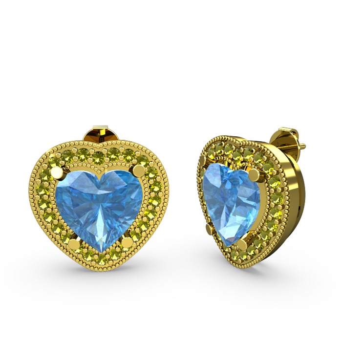 Akuamarin ve peridot 8 ayar altın küpe