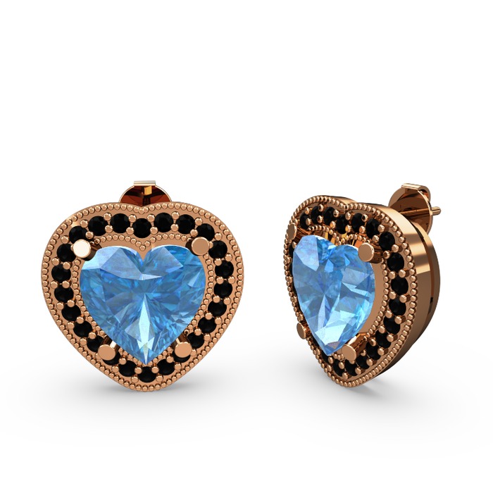 Akuamarin ve siyah zirkon 8 ayar rose altın küpe