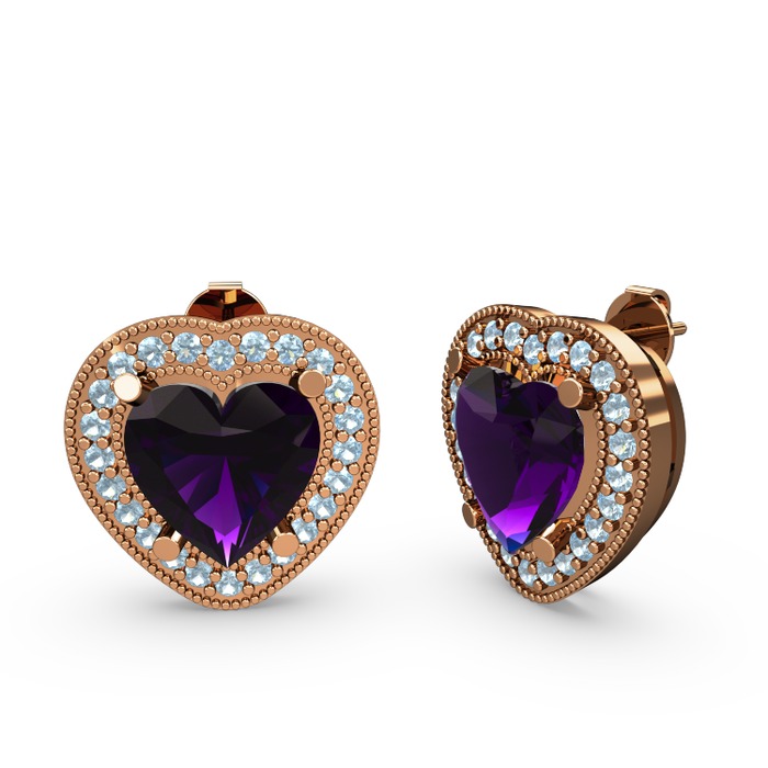 Ametist ve akuamarin 925 ayar rose altın kaplama gümüş küpe