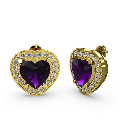 Ametist ve beyaz zirkon 14 ayar altın küpe