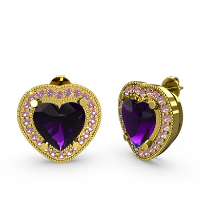Ametist ve pembe kuvars 8 ayar altın küpe
