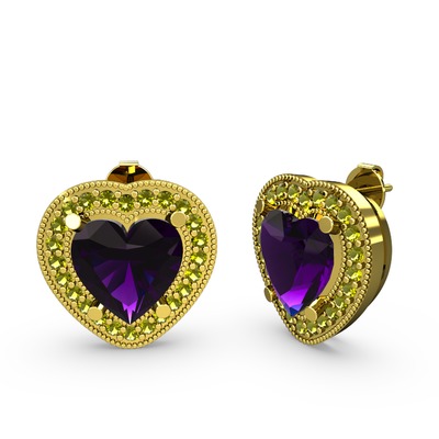 Ametist ve peridot 925 ayar altın kaplama gümüş küpe