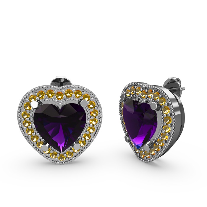Ametist ve sitrin 14 ayar beyaz altın küpe