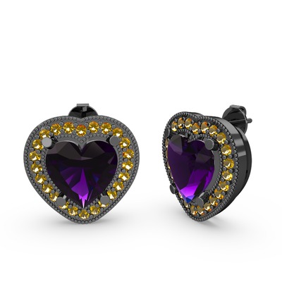 Ametist ve sitrin 925 ayar siyah rodyum kaplama gümüş küpe