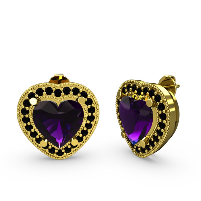 Ametist ve siyah zirkon 8 ayar altın küpe