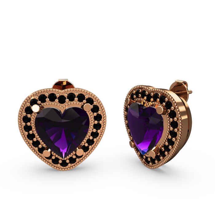 Ametist ve siyah zirkon 8 ayar rose altın küpe