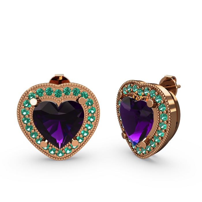 Ametist ve yeşil kuvars 14 ayar rose altın küpe