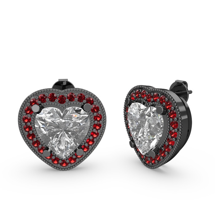 Beyaz zirkon ve garnet 925 ayar siyah rodyum kaplama gümüş küpe