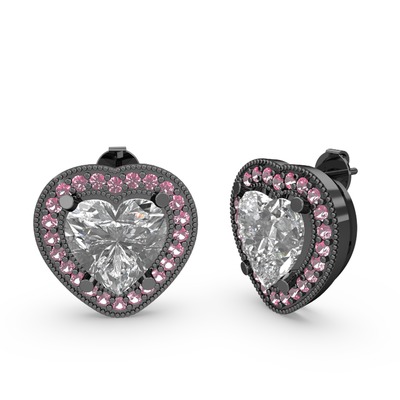 Beyaz zirkon ve pembe kuvars 925 ayar siyah rodyum kaplama gümüş küpe