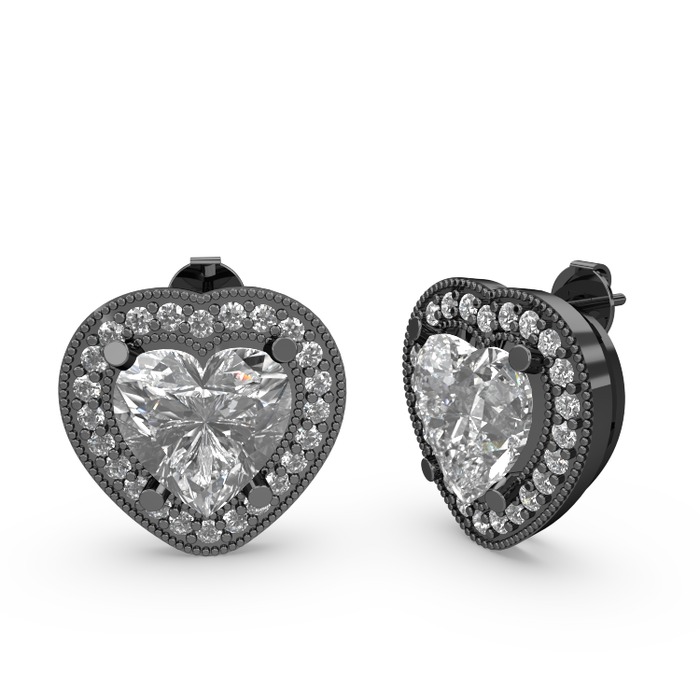 Beyaz zirkon ve pırlanta 925 ayar siyah rodyum kaplama gümüş küpe (0.528 karat)