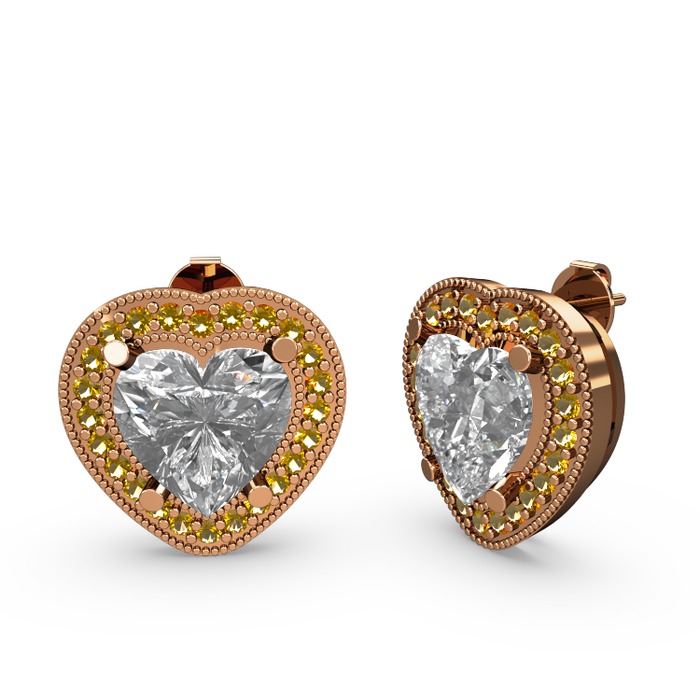 Beyaz zirkon ve sitrin 14 ayar rose altın küpe