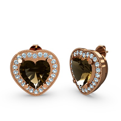Dumanlı kuvars ve akuamarin 8 ayar rose altın küpe