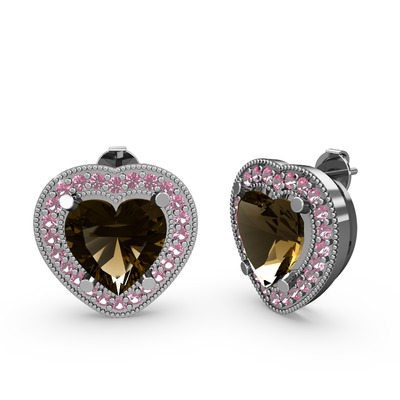Dumanlı kuvars ve pembe kuvars 925 ayar gümüş küpe