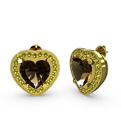 Dumanlı kuvars ve peridot 8 ayar altın küpe