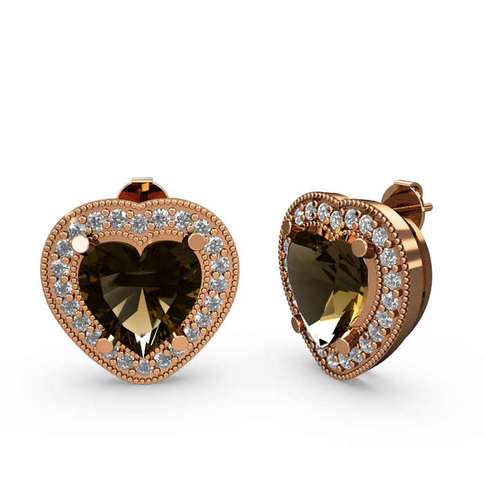 Dumanlı kuvars ve pırlanta 14 ayar rose altın küpe (0.528 karat)