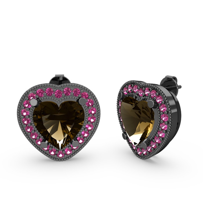 Dumanlı kuvars ve rodolit garnet 925 ayar siyah rodyum kaplama gümüş küpe