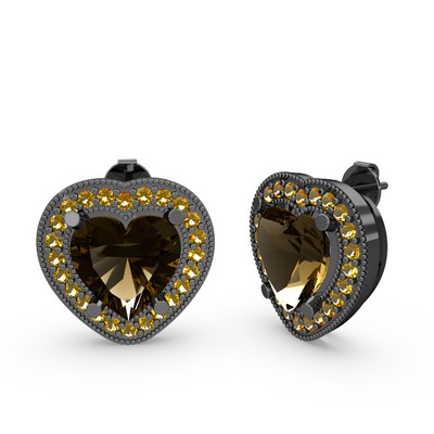 Dumanlı kuvars ve sitrin 925 ayar siyah rodyum kaplama gümüş küpe