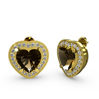 Dumanlı kuvars ve swarovski 18 ayar altın küpe