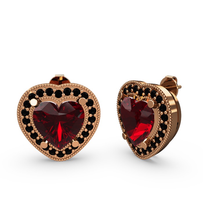 Garnet ve siyah zirkon 8 ayar rose altın küpe