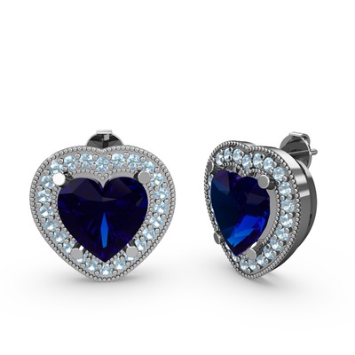 Lab safir ve akuamarin 18 ayar beyaz altın küpe