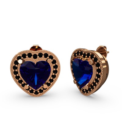 Lab safir ve siyah zirkon 925 ayar rose altın kaplama gümüş küpe