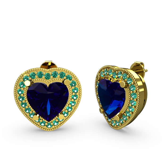 Lab safir ve yeşil kuvars 14 ayar altın küpe