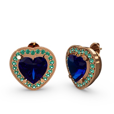 Lab safir ve yeşil kuvars 18 ayar rose altın küpe