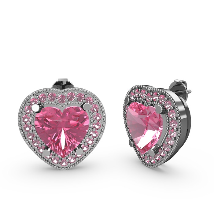 Pembe kuvars 18 ayar beyaz altın küpe