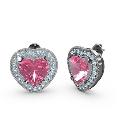 Pembe kuvars ve akuamarin 8 ayar beyaz altın küpe