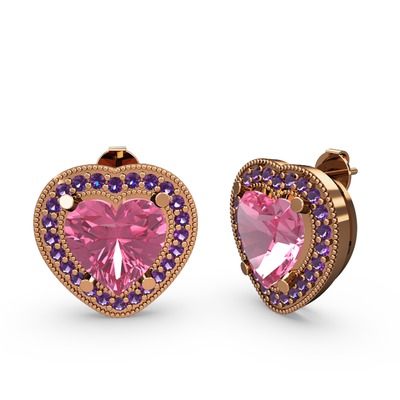 Pembe kuvars ve ametist 925 ayar rose altın kaplama gümüş küpe