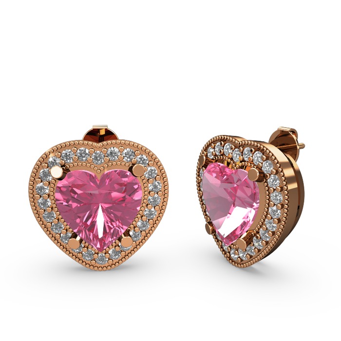 Pembe kuvars ve pırlanta 8 ayar rose altın küpe (0.528 karat)