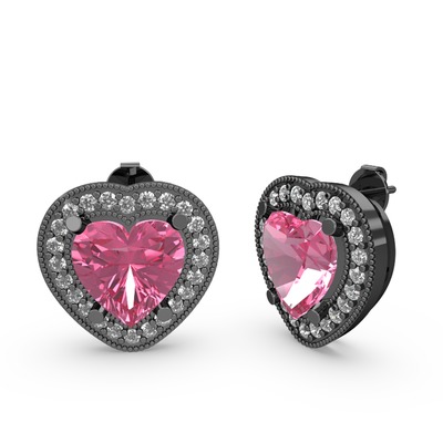 Pembe kuvars ve pırlanta 925 ayar siyah rodyum kaplama gümüş küpe (0.528 karat)