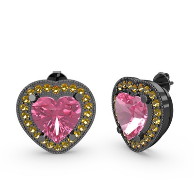 Pembe kuvars ve sitrin 925 ayar siyah rodyum kaplama gümüş küpe
