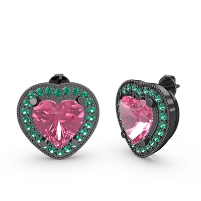Pembe kuvars ve yeşil kuvars 925 ayar siyah rodyum kaplama gümüş küpe