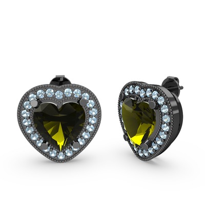 Peridot ve akuamarin 925 ayar siyah rodyum kaplama gümüş küpe